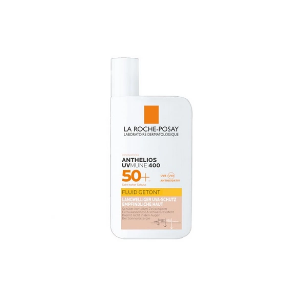 ضد آفتاب رنگی کنترل کننده چربی لاروش پوزای آنتلیوس یووی مون 400 با SPF50+ یک ضدآفتاب فوق العاده باکیفیت می باشد. این محصول به لطف فناوری نوآورانه فیلتر Mexoryl 400، محافظت بسیار بالایی در برابر اشعه های ماوراء بنفش UVB و UVA فوق طولانی ارائه می دهد. بعلاوه از پوست حساس صورت در برابر آسیب سلولی ناشی از نور خورشید محافظت می کند. ضدآفتاب فلوئیدی آنتلیوس یووی مون 400 اویل کنترل تینتد لاروش پوزای فرمولاسیونی ضد آب و مقاوم در برابر عرق دارد. این محصول با بهره گیری از فناوری Airlicium سبوم و چربی اضافی پوست را جذب می کند. لذا رنگ ملایمی به پوست داده و تا 12 ساعت یک اثر مات کننده ایجاد می نماید.