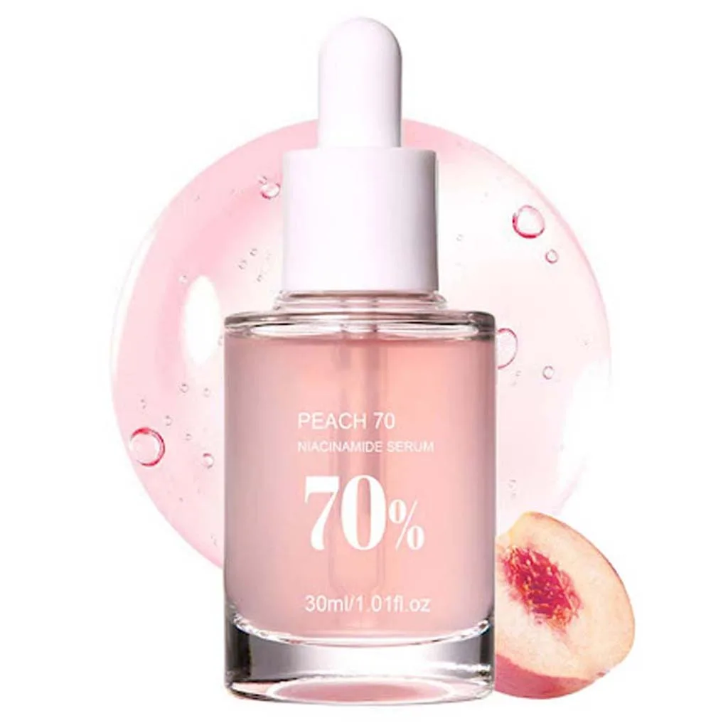 سرم سرم روشن کننده نیاسینامید آنوا حاوی عصاره هلو PEACH 70% NIACINAMIDE از ANUA ، با ترکیبی غنی از عصاره میوه هلو و نیاسینامید، به بهبود رنگ و بافت پوست کمک می کند.